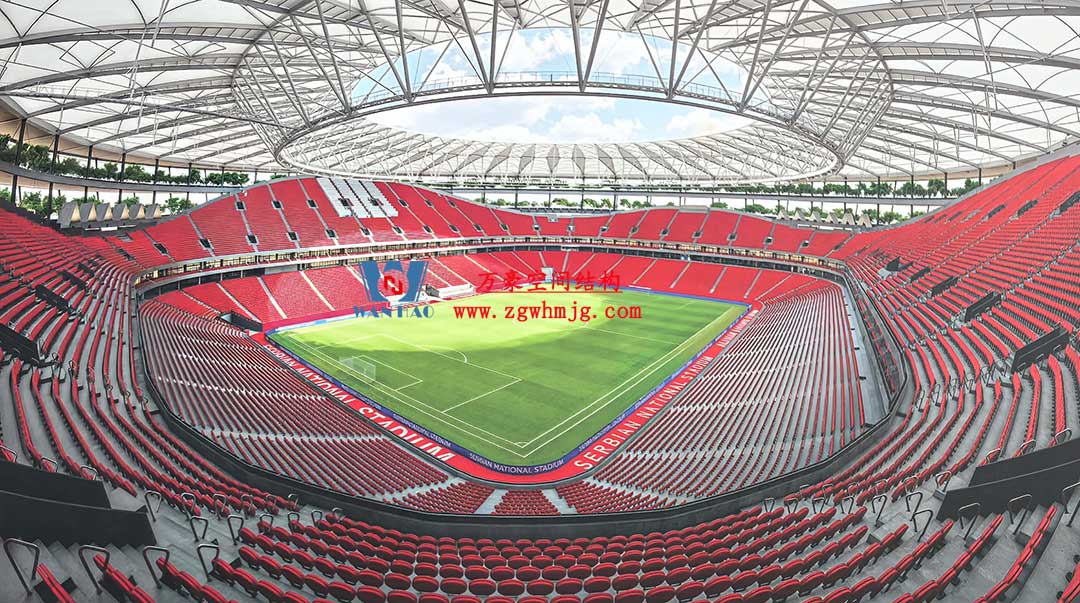 塞尔维亚国家足球场项目位于贝尔格莱德市西南部,该项目PTFE网格覆膜+PTFE膜展开面积40000平方米。