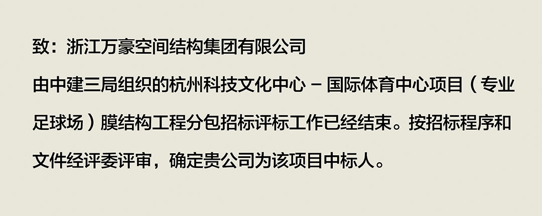年底收官!恭喜浙江萬豪集团中标-杭州国际体育中心(专业足球场)膜结构工程